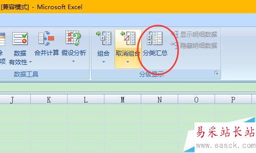 3、選中整個數據表 ,打開數據選項卡,單擊分類匯總按鈕。