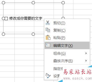 右鍵單擊復選框選擇編輯文字,改寫成你需要的文字。注意,有多少個數據項就要重復生成相應數量的“復選框”。