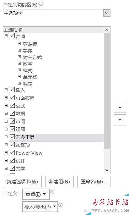首先打開Excel,我們要用到開發工具,這可以在Excel的開始菜單選項中找到設置,將開發工具調節到主選項卡中。勾選“選項—自定義功能區”右側的開發工具即可。