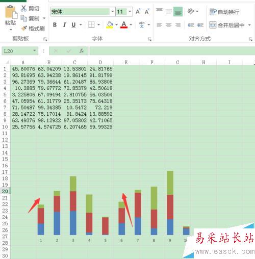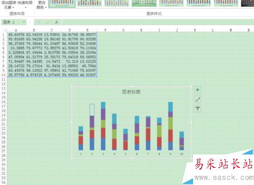 2、然后創建一個堆積圓柱圖。