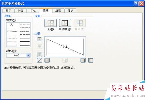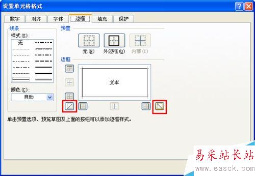 3、在出現的設置界面中選擇邊框,看到標注的兩個位置有左斜線和右斜線