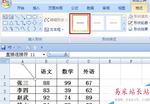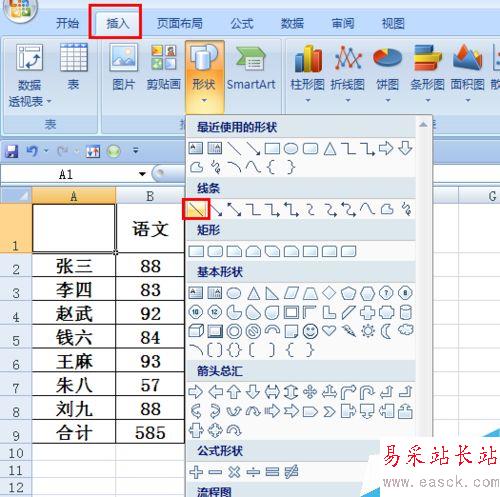 1、還是以這個表格為例,制作雙斜線表頭,選擇插入選項卡——形狀——左斜線