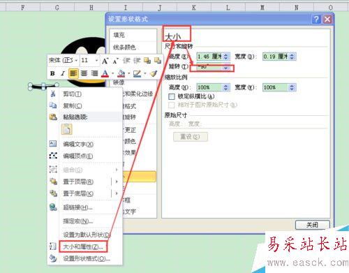 制作企鵝的手。在工具欄【插入】里,選擇【形狀】,插入一個橢圓。調整大小。顏色填充為黑色。右鍵單擊,選擇【大小和屬性】-【大小】-選擇合適的旋轉角度。復制另一個手。兩個手是對稱的。旋轉的角度應該是相反的。這樣企鵝的手完成了