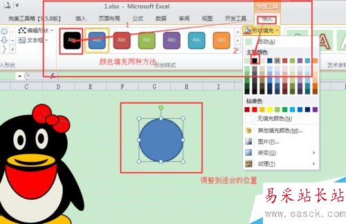 制作企鵝的身體。在工具欄【插入】里,選擇【形狀】,插入一個橢圓。調整大小。顏色填充為黑色。同樣方法再插入一個,顏色填充為白色。這樣企鵝的大肚子就做好了。注意細節。一定要把企鵝的肚子至于底層。方法:選中后,右鍵單擊,選擇至于底層。進行微調