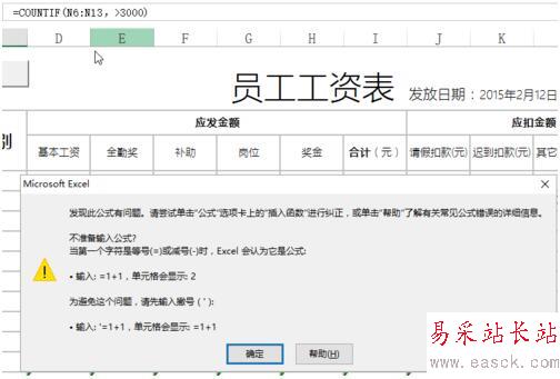 3.第二個(gè)參數(shù)是判斷的條件,可以使用表達(dá)式>3000來輸入。如圖所示: