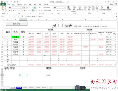 2.需要統(tǒng)計(jì)實(shí)發(fā)工資大于3000的人數(shù),就可以使用countif函數(shù)來獲取。首先選擇判斷的區(qū)域。如圖所示: