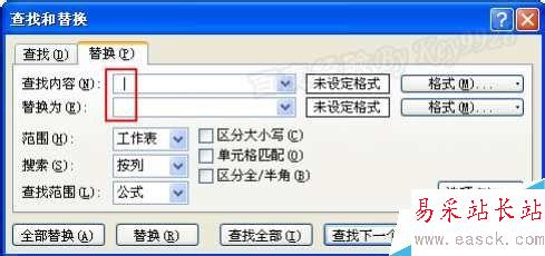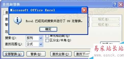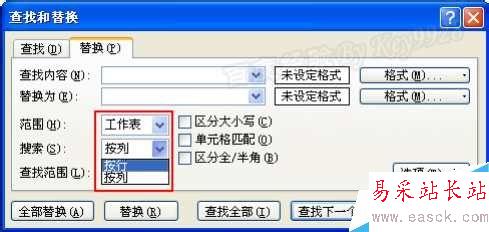 選擇“搜索”為“按列”可提高搜索速度,再單擊“全部替換”: