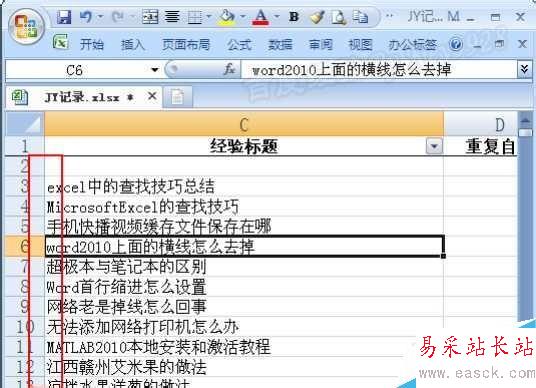 其實有空格的一行,從公式欄中復制其中一個空格: