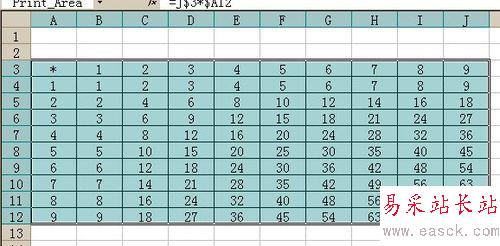 2、我們現在只需要打印 A3 到J12 這一部分,那我們就需要設置打印區域。首先我們要按住鼠標左鍵托選取這一區域:見下圖: