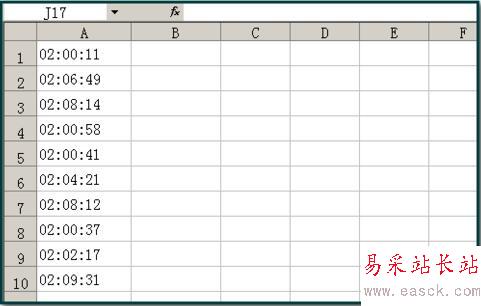 4.A1到A10單元格即同時顯示出從2:00:00到2:10:00這個時間段的隨機時間;