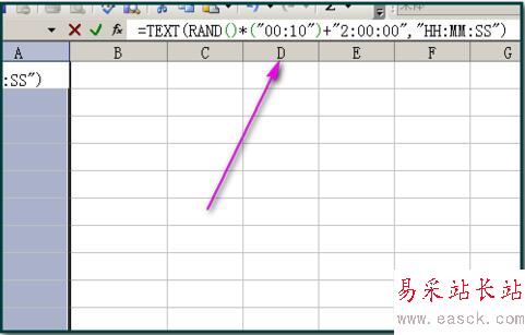 2.在編輯欄內輸入公式:=TEXT(RAND()*("00:10")+"2:00:00","HH:MM:SS")
