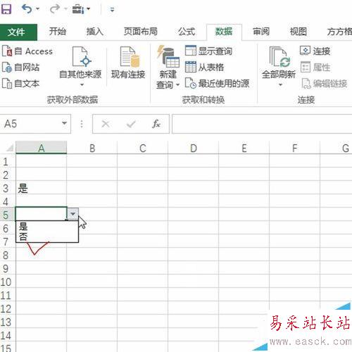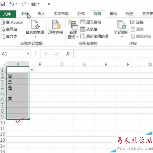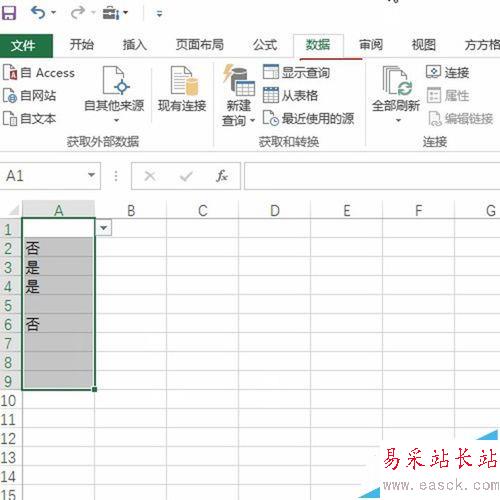 1、首先打開數據表格,發現單元格設定了數據有效性,只能輸入是或者否,如下圖所示: