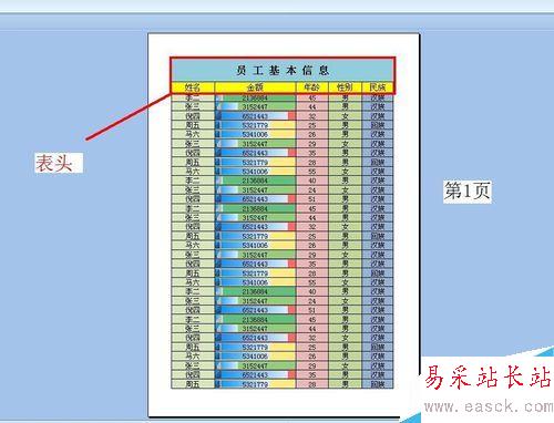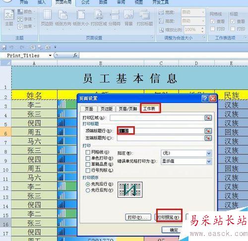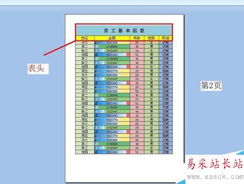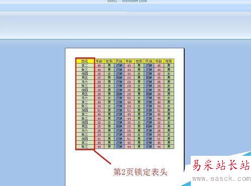 $A:$A就是選定了A列,點(diǎn)擊對(duì)話框下面的“打印預(yù)覽”,我們就可以看到打印效果了,下面的第1頁(yè)和第2頁(yè)中是不是有了表頭了。