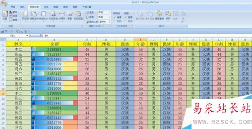 我們現(xiàn)在把表格再多復(fù)制幾列(如圖所示),這樣可以嘗試一下鎖定列表頭行不行,現(xiàn)在我們繼續(xù)打開“頁(yè)面設(shè)置”對(duì)話框,選擇“工作表選項(xiàng)卡”,在“左端標(biāo)題行”中輸入