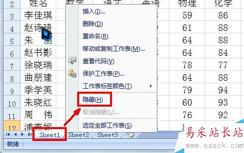 1、在左下角某一工作表上右擊鼠標,然后選擇隱藏。
