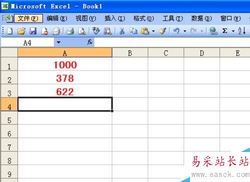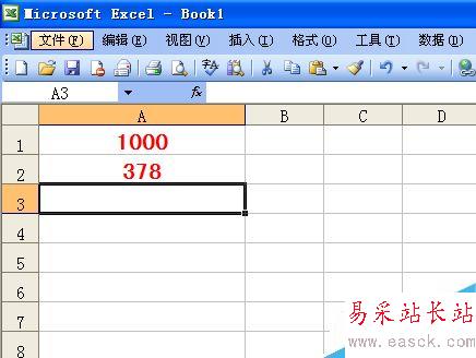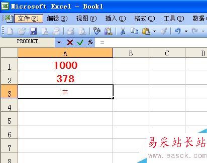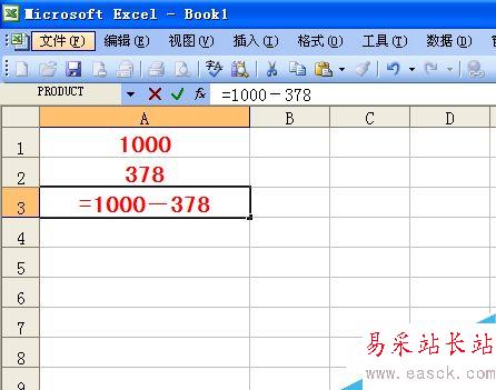 用鍵盤輸入=號后,再輸入公式“=1000-378”。