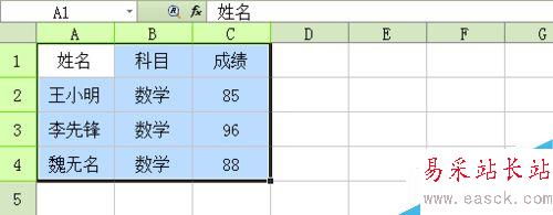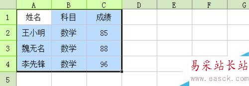 2、在表格中用鼠標(biāo)拖選要排序的區(qū)域。