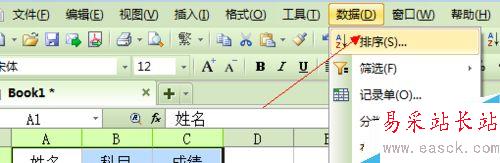 3、在菜單欄里選擇“數(shù)據(jù)”--->“排序”。
