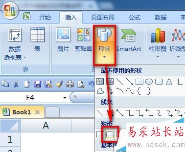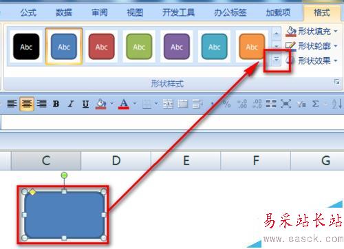 4、選中插入的矩形,選擇如下圖的右下角下拉按鈕位置。