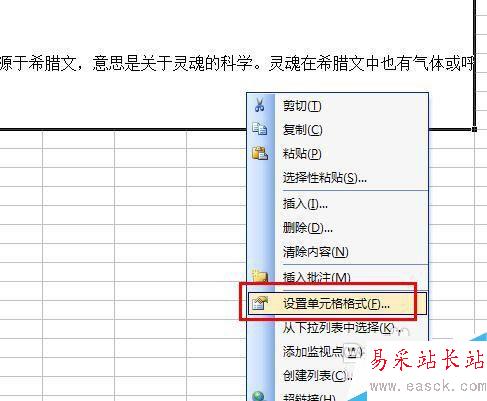 6、我們右鍵點擊這個單元格,在彈出的右鍵菜單中,選擇設置單元格格式。