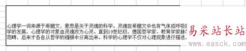 在excel表格中有時候需要用大段的文字,比如要對一個表格插入描述性的詞語。但是當你插入大段文字的時候,你會發現這些文字并不像word中那么好編輯,經常超出表格,顯示成亂七八糟的樣子。例如下面這個單元格中,大段文字超出表格很多,我們下面就來看看怎樣編輯這一大段文字。