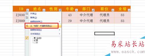 8、另一種方法是通過在要進行消除的標題下拉列表中選擇“從中消除篩選項”來實現。