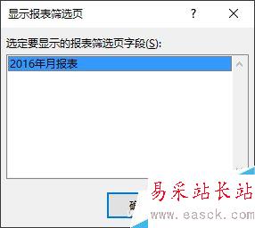 將會(huì)顯示報(bào)表篩選頁對(duì)話框,因?yàn)橹挥幸粋€(gè)篩選頁字段,默認(rèn)已選中,所以直接點(diǎn)擊“確定”,就可完成批量創(chuàng)建工作表的任務(wù)了,而且工作表名稱都是你指定的。