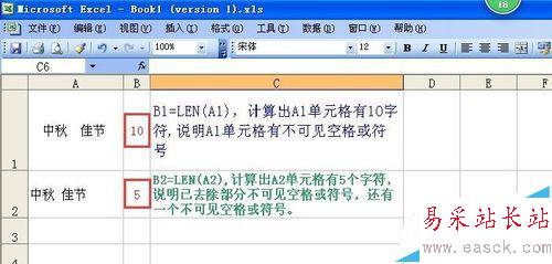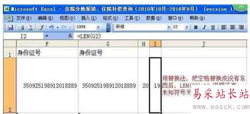 方法二:用LEN函數判斷看不見的空格和符號是否被刪除。