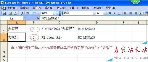 1、CLEAN函數的語法格式及實例