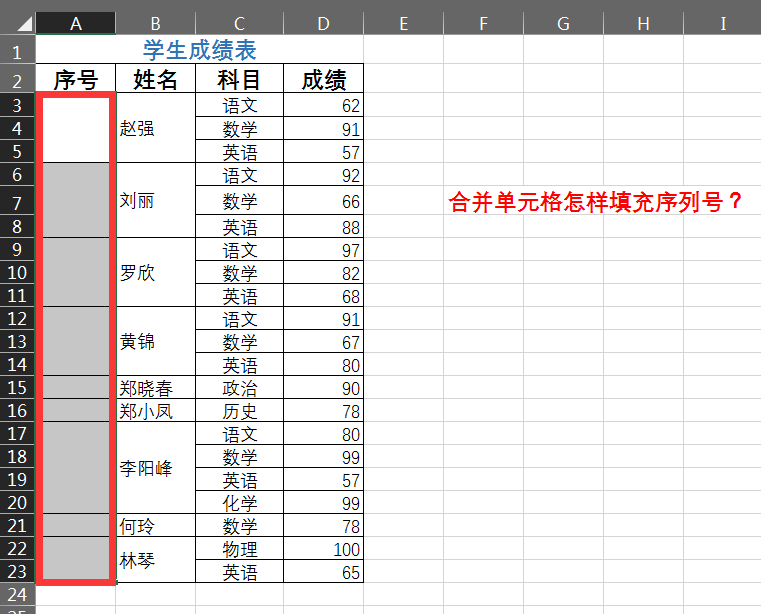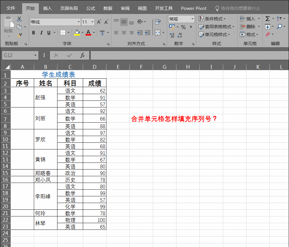 Excel合并單元格填充序列號(hào)的方法如下所示: