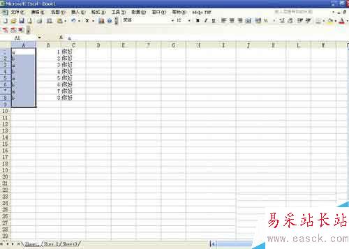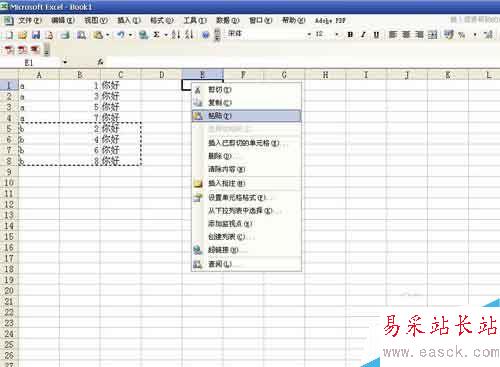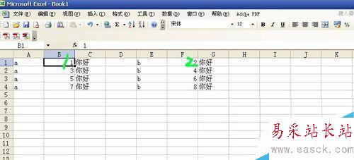 4、這個時候原先的項目就被分成ab兩欄了。我們剪切下面的b欄