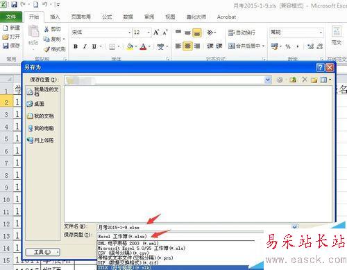 3、這點在另存為的時候就可以看到保存的格式,可以點擊保存類型,然后保存就可以了。