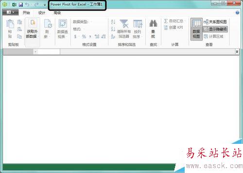 5、顯示彈出的Power Pivot窗口。彈出“Power Pivot for Excel”窗口,在該窗口中可看到可以在該功能中創建數據透視表,由于本例中沒有添加數據,所以,無法創建數據透視表,如下圖所示。