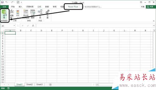 4、顯示添加的“Power Pivot”選項卡。返回工作簿中,可看到添加的“Power Pivot”選項卡,切換至該選項卡下,可看到該選項卡下的工具,單擊“管理”按鈕,如下圖所示。