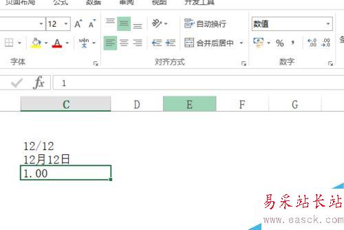 4、上圖自動識別后,單元格的格式變為自定義。如果我們將單元格格式設置為數值或者除常規、文本以外的非自定義格式,那么不會顯示分數內容,而是分數的值,如圖所示: