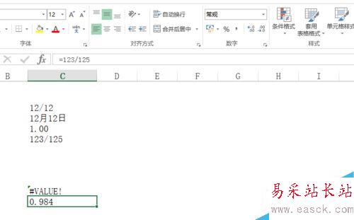 5、不過在常規格式下輸入的非正常日期的內容的數值,一樣能表現為分數形式,不過等同于文本格式,但是不會修改單元格的格式,也不能用于計算。如圖所示: