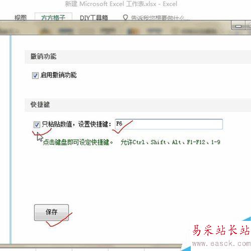 4、在彈出的對話框中勾選快捷鍵設置按鈕,并定義快捷鍵為f6,如下圖所示: