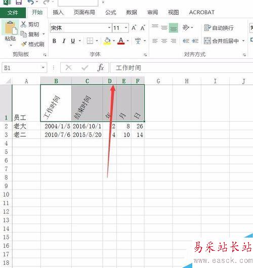6、需要調(diào)整幾列的寬度一致,可以將B/C/D/E幾列一起選中,調(diào)整一行其他的也會(huì)動(dòng)。