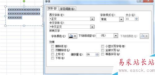 4、選擇“文本框”中的文字內容,點鼠標右鍵選“字體”,跳出“字體”對話框,選中任意選項確認即可得出我們想要的效果