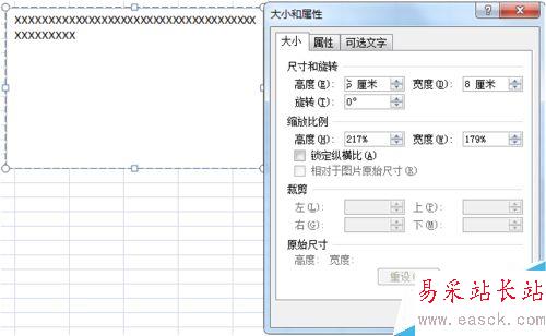 6、選擇“文本框”,點鼠標右鍵選“大小和屬性”,跳出對話框,更改主“高度”或“寬度”或拖動“文本框”的對角,也可得出我們想要的效果
