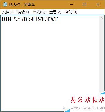 首先,在文檔所在目錄下用記事本建立一個空文本,存為文件名LS.BAT(注意擴展名不能是TXT,要改成BAT)。然后在里邊輸入如下一行簡單代碼(注意代碼行中有三處空格,不要漏掉):