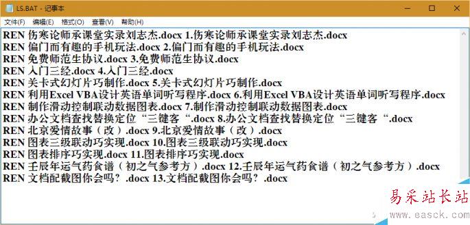 將復制的內容回填到LS.BAT文件中,覆蓋掉BAT文件中原有的內容,然后雙擊LS.BAT運行,這樣文件就自動全部按序號加標題的方式重命名好了。