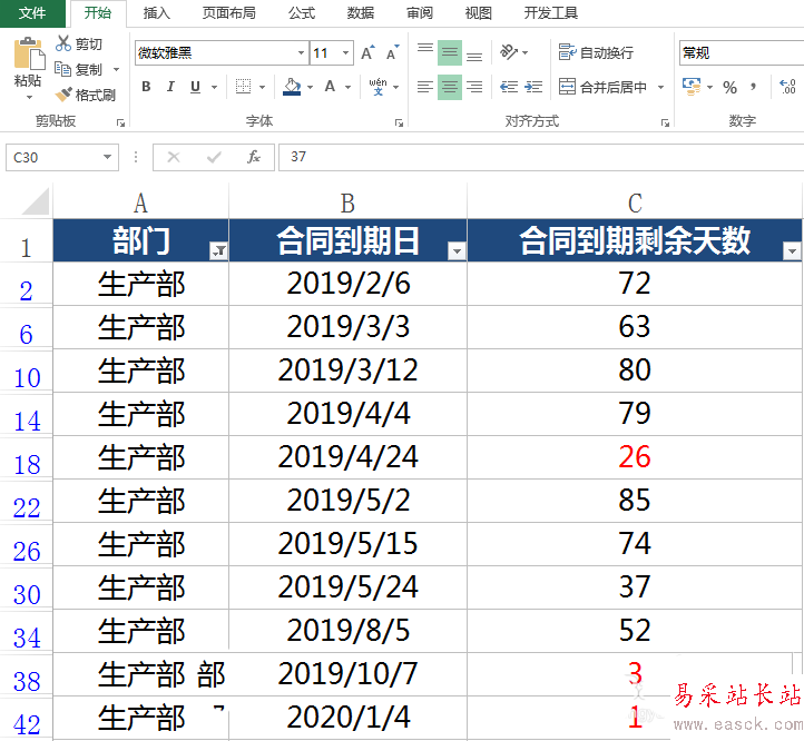 下圖是職員簡歷表中的一部分信息,我們要設置一個視圖,幫助我們一鍵篩選出生產部的數據。
