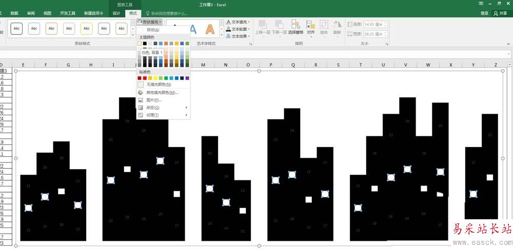 Excel中可以制作柱狀圖,想要給柱狀圖添加一些藝術效果,該怎么制作卡通城市剪影的效果的柱形圖呢?下面我們就來看看詳細的教程。