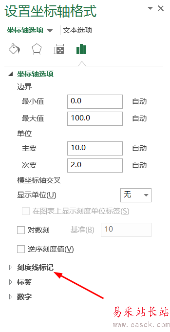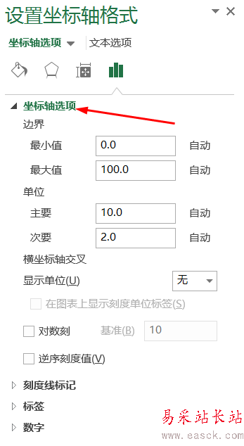 4、設置數據的量程:雙擊圖中的數據→在右側的“坐標軸選項”中進行設置