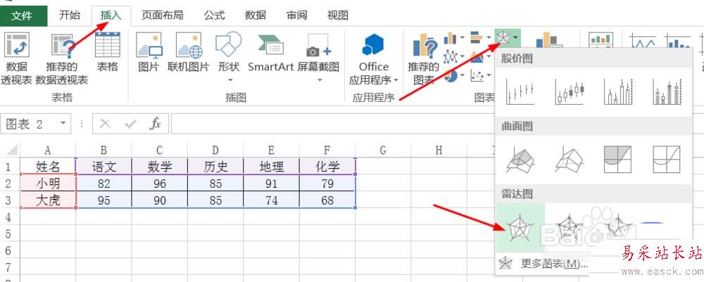 excel表格中的數據怎么制作成雷達圖?