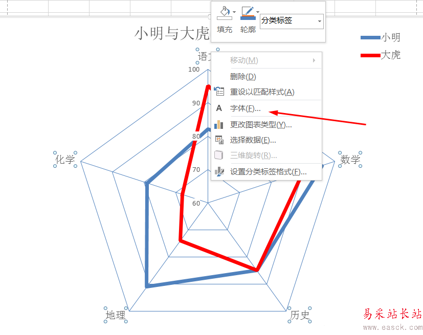 excel雷達圖怎么分類填充顏色?