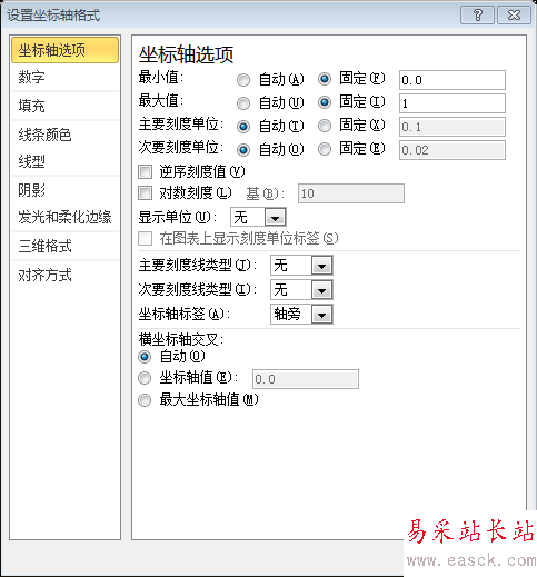 3、選中縱坐標軸,設置坐標軸格式,具體設置如下圖一。