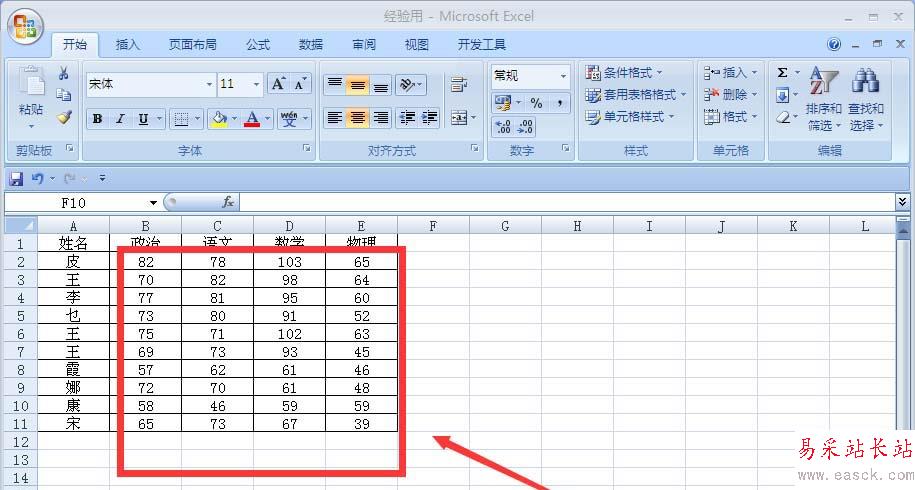 2、打開要處理的帶有一組成績的電子表格文檔。我們要通過設置把不同層次分數看起來醒目