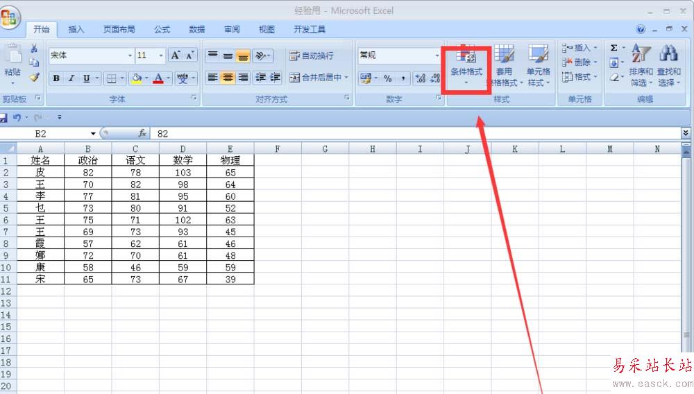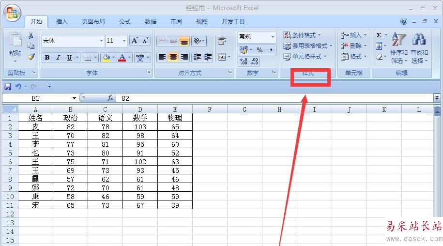 3、選中A2-E11單元格,找到菜單欄中的“樣式”